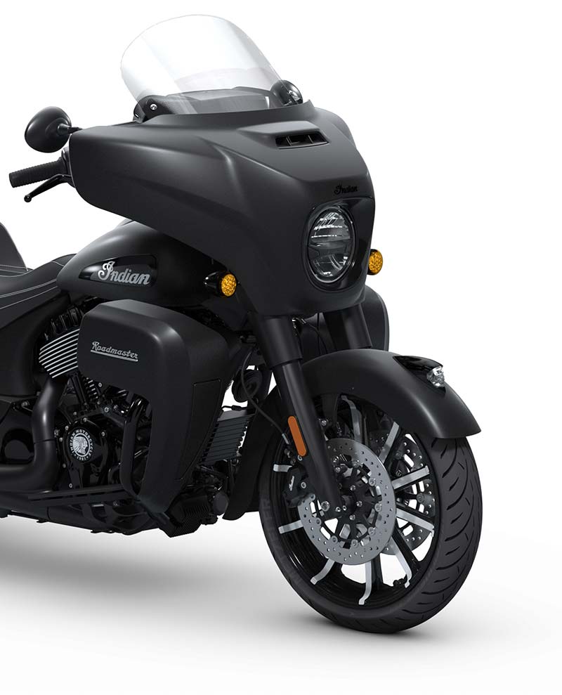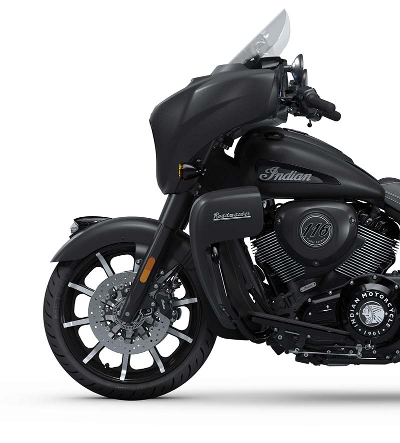| Equipo Estándar | Pantalla de 7" impulsada por RIDE COMMAND con navegación e integración de Apple CarPlay®; parabrisas eléctrico; defensas de carretera; asiento de vinilo estilo Gunfighter; monitoreo de presión de llantas; alforjas rígidas con bloqueo remoto; modos de manejo seleccionables; desactivación de cilindro trasero; ABS; control de crucero; encendido sin llave; sistema de audio Powerband de 400 vatios con AM/FM, Bluetooth®, USB, entrada compatible con smartphone y banda meteorológica; puerto de carga de 12 V. |
